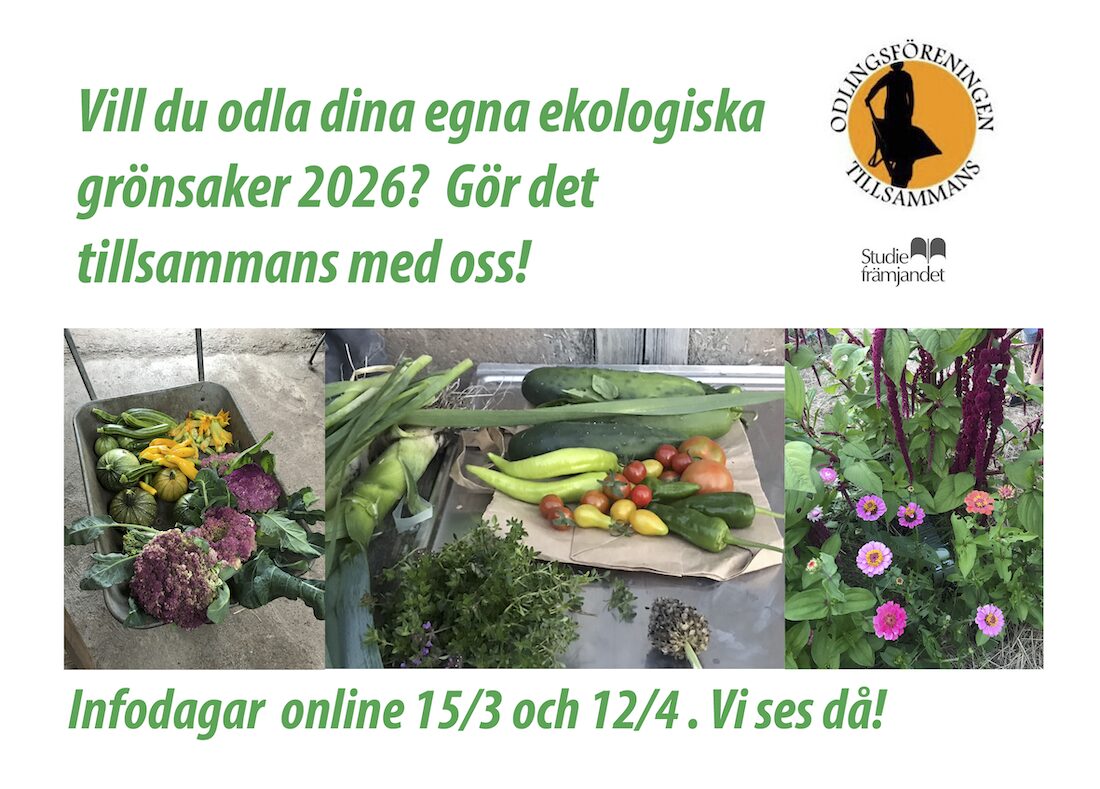 Vi är en ideell förening där medlemmarna på sin fritid driver en ekologisk bär- och grönsaksodling – tillsammans. Genom praktiskt lärande och kunskapsutbyte ställer vi om till ett mer hållbart samhälle.
